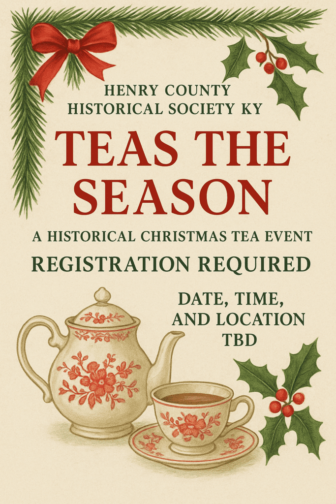 Teas the Season – TBD – This is an event we are still working on. We are needing a historical location, preferably a historical home that can accommodate 20-25 people. If you are willing to let us use your historical home, please contact us at henrycountyhisto@gmail.com